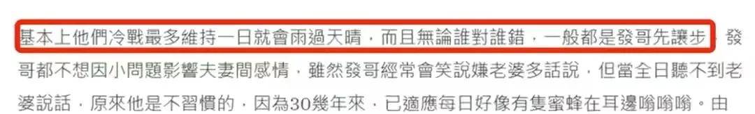 文中说到,陈荟莲在外当发哥经纪人时,是出了名的雷厉风行,但当回到家中后,陈荟莲又立马从在外的“女强人”形象,变回了小鸟依人,顺从发哥的意见。
