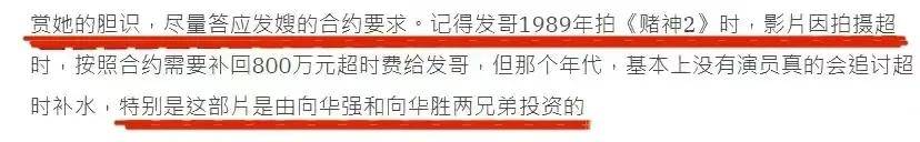 然而陈荟莲却毫不畏惧,不卑不亢地向其讨要补款,最后,向华胜也是被她的胆识折服,将800万的超时费付给了周润发。