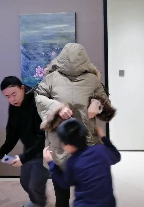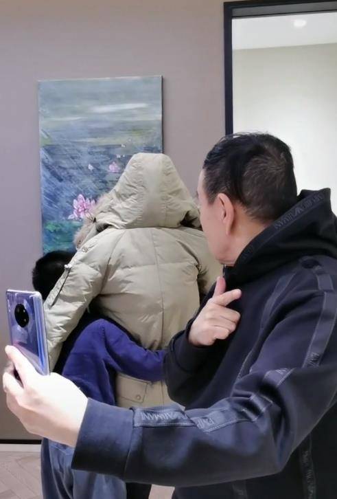 视频中,潘长江正在拿着手机自拍。潘阳身穿一件咖色的羽绒服,头上还戴着厚重的帽子,假装在欣赏油画,实际上一直在扒拉潘长江的帽子。而潘长江的小外孙则安静地站着,胳膊紧紧地抱着妈妈,看上去十分乖巧可爱。
