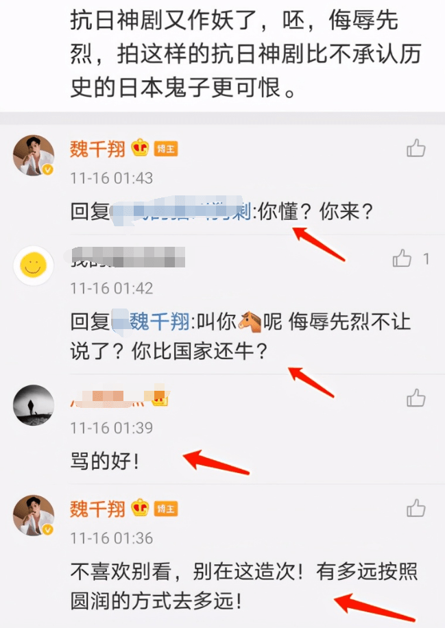 在网友的质问下,说这部抗日神剧是来作妖,是侮辱先烈的,还说这比不承认历史的日本鬼子更加可恨!结果魏千翔在线怒对网友了!