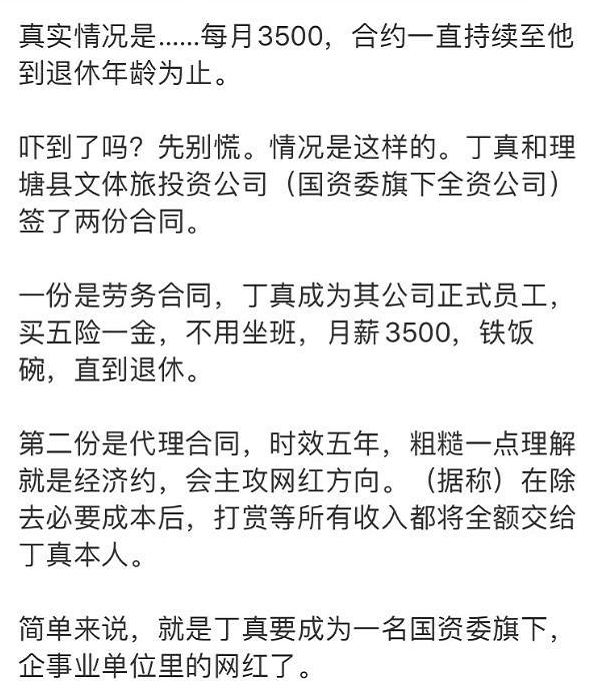 据媒体报道,丁真已经跟家乡的某文旅公司(国企)签约,月薪3500,不用坐班,有五险一金,而且可以干到退休的年龄。